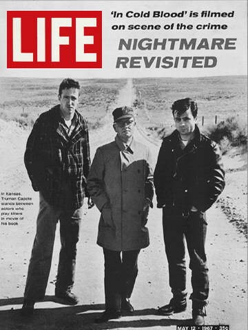 1967 May 12 LIFE Magazine – Truman Capote – In Cold Blood Cover – Truman Capote stands between actors who play